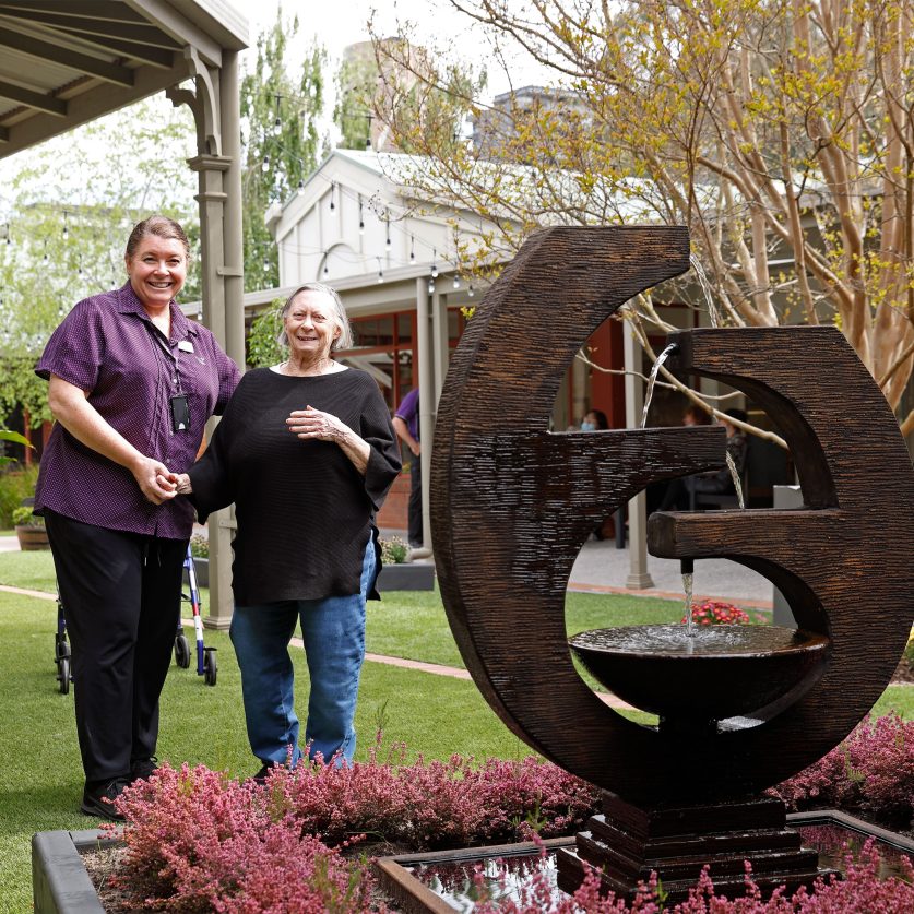 The garden spaces at Box Hill Community feature beautiful fountains, greenery and flowers for residents to enjoy.
