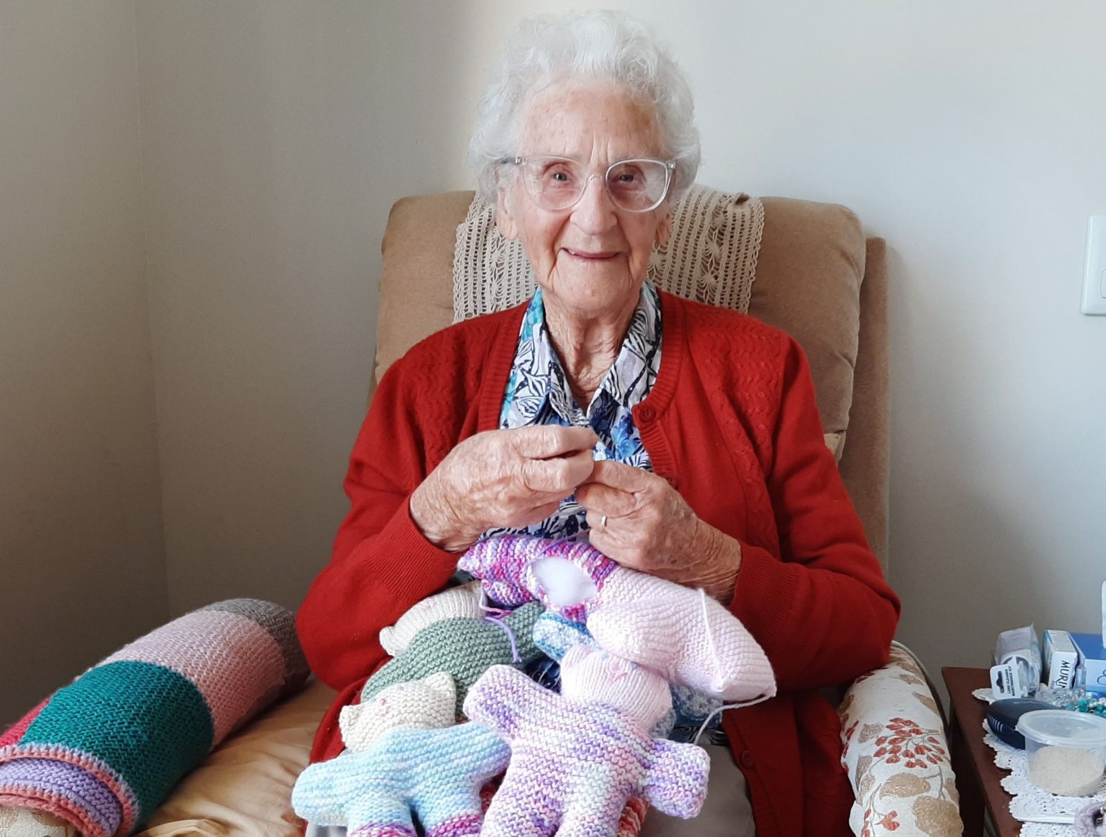 Her love of volunteering runs deep. For the last couple of years, Norma has been knitting trauma bears for children at the hospital who have suffered trauma in their lives.