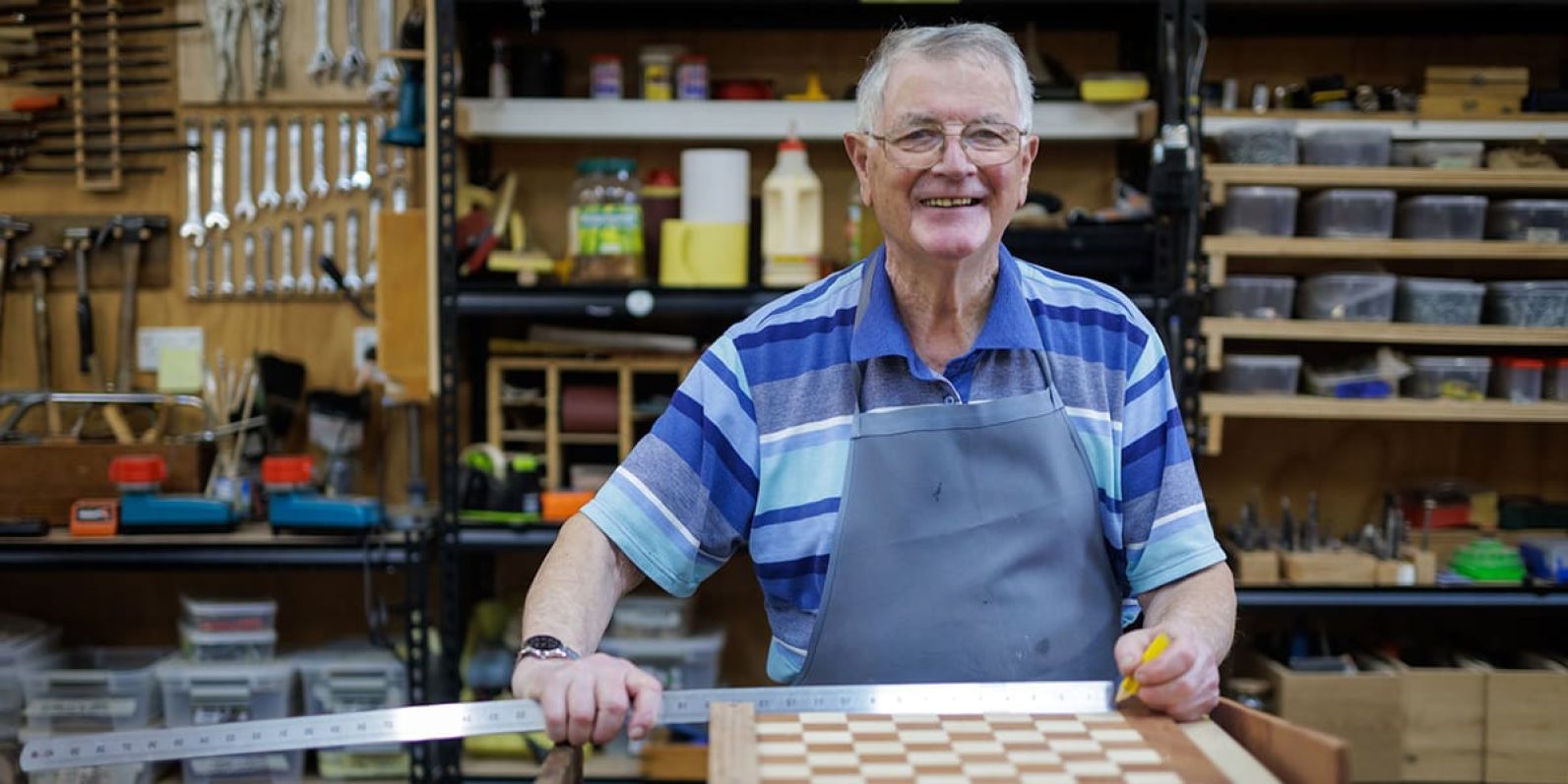 Just ask retired doctor Peter Dobson, who is in his element in the well-equipped woodwork shop at the Men’s Shed at the Hawthorn AgeWell Centre. He’s utterly enjoying doing woodwork, something he’s always hankered after but never had time to do. He’s made pizza paddles, chess boards and more – wonderful gifts for the family. He says he comes in as much for the companionship as the woodwork, which he thoroughly enjoys.