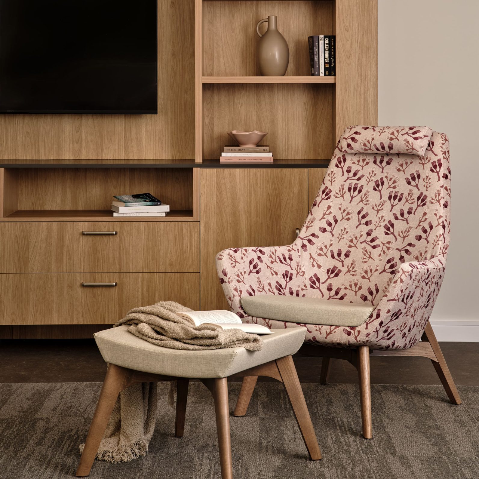 The soft furnishings of the new wing in particular pay tribute to First Nations People. The fabric for the furnishings and wall covering designs are by the late Walmajarri Aboriginal artist Jimmy Pike, who was born in the Kimberley region of Western Australia. He was inspired by flora and fauna that were unique to his Australian desert life.