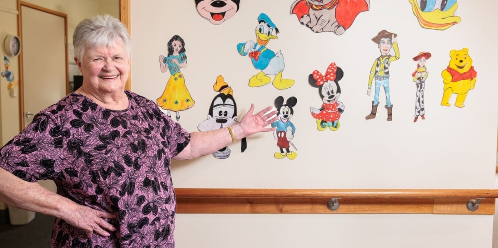 For Wanda, art is now a way of life. Take a stroll through Uniting AgeWell Rosetta Community, Strathaven, and the cream-painted walls will suddenly be covered in Disney characters and drawings created lovingly by Wanda.
