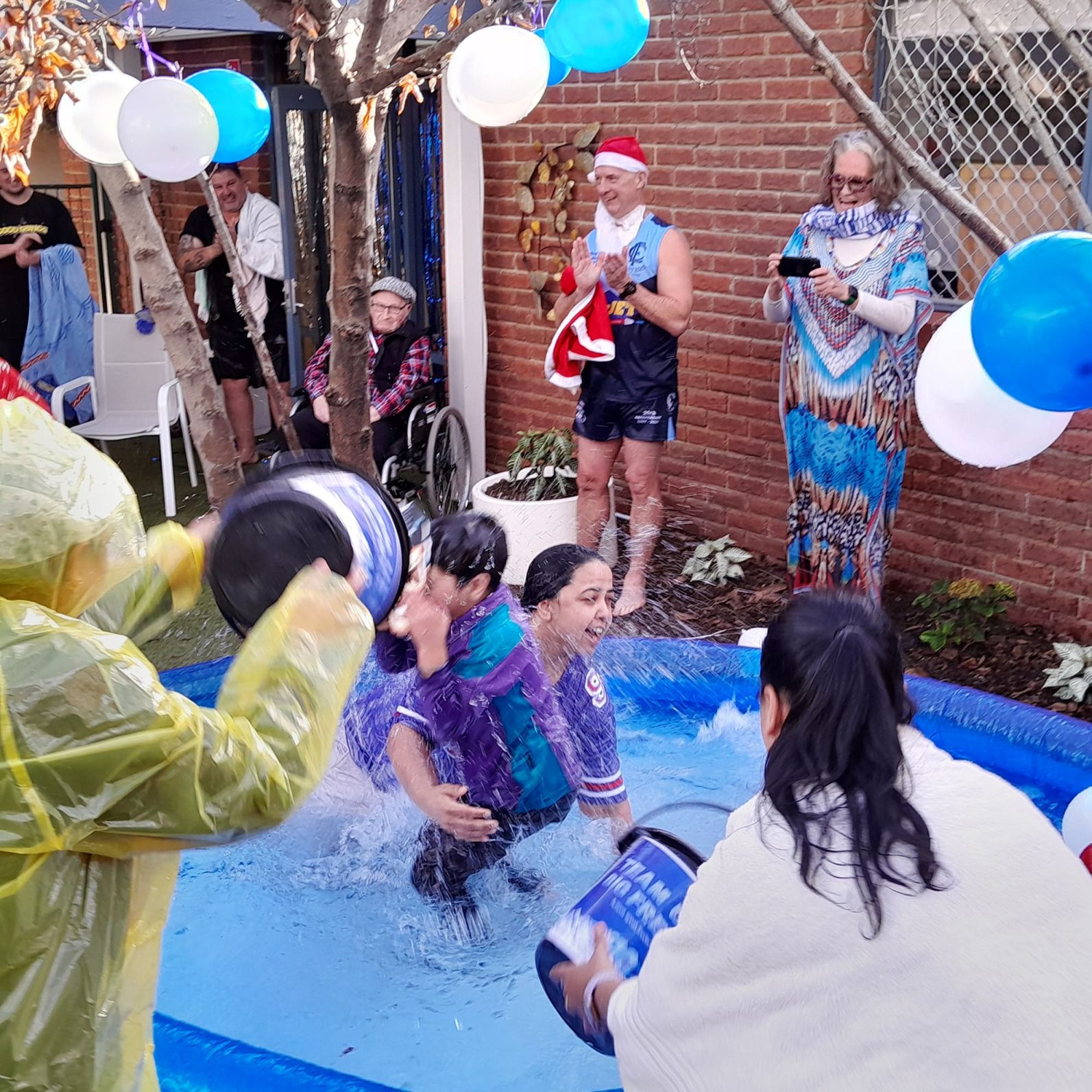 Some residents also signed up to have a bucket of icy water tipped over their heads –without getting into the pool. Others got hold of water pistols and joyfully squirted staff members!