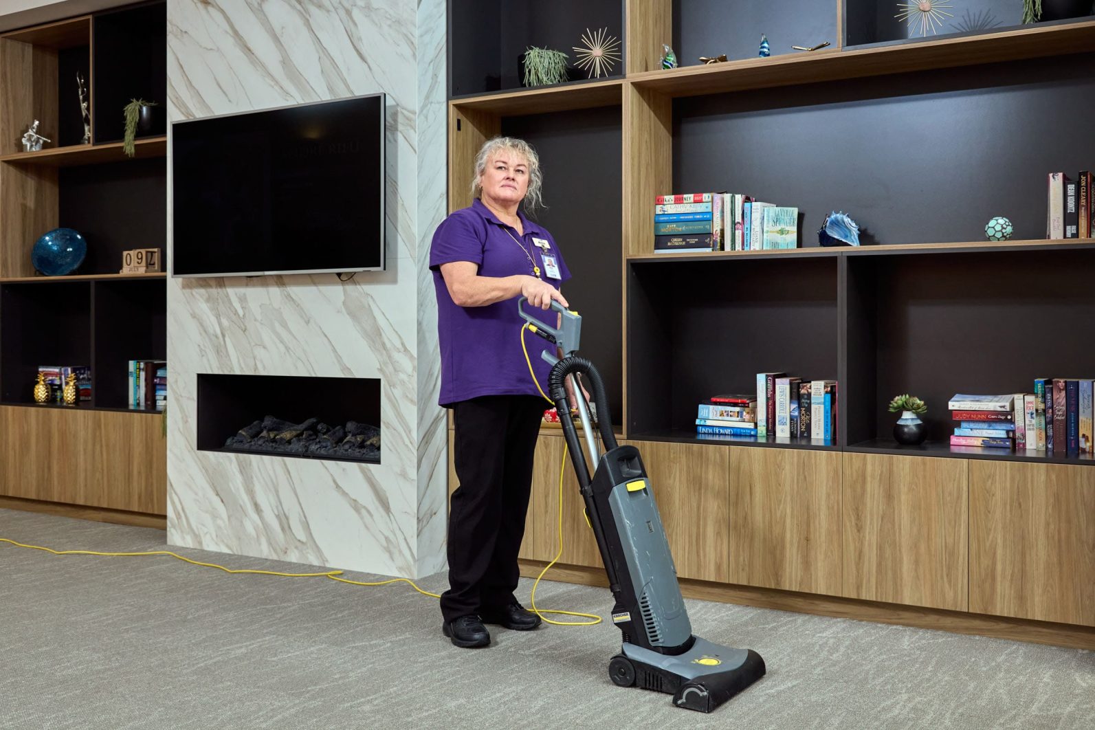 Anna is responsible for cleaning all the main shared areas – the living and dining rooms, the activities room, staff offices, public toilets and so on. She also steps in to clean residents’ bedrooms as well as with the laundry when needed.